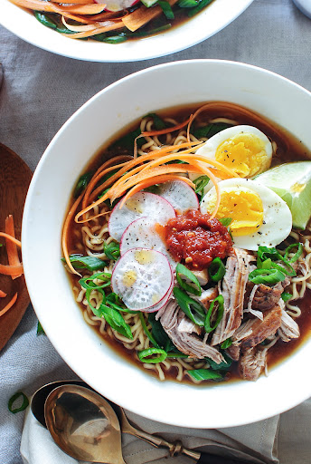 Ramen can be served exploitation soup or made into dry preparednesses, summation toppings of egg, gallus gallus small-arms, vegetables, sausages or meatballs that add to the delectation of sipping a roll of ramen.